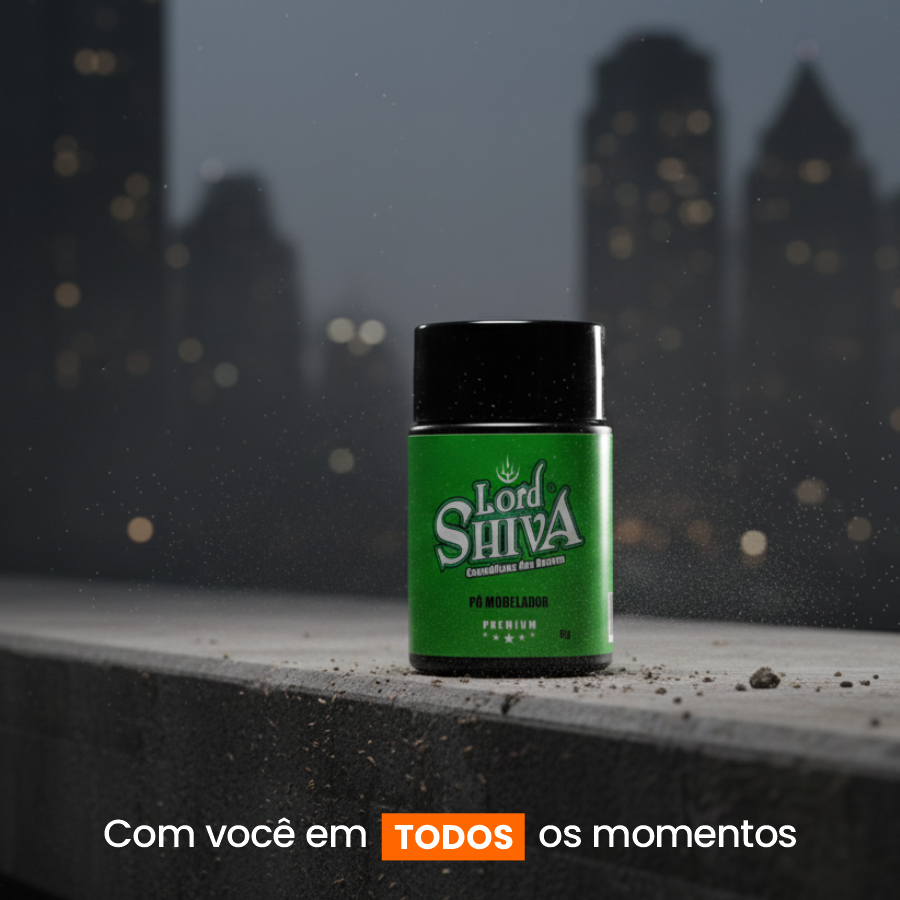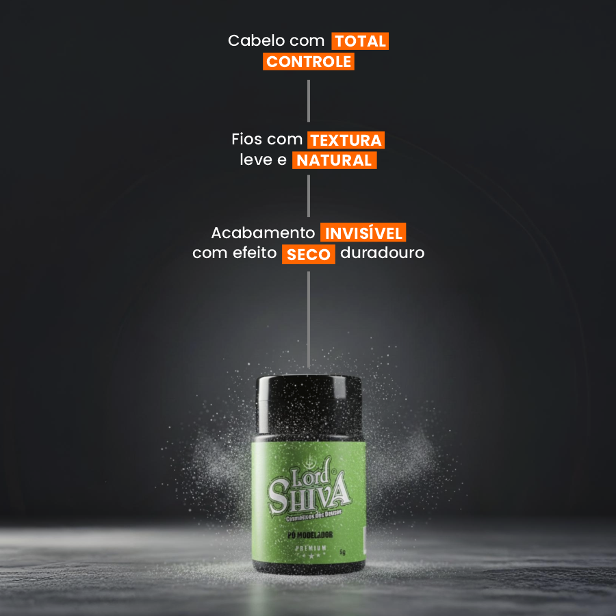 Não. O Pó Modelador da Lordshiva é ultrafino e se integra facilmente aos fios. Quando aplicado na medida certa e espalhado com as mãos, ele desaparece visualmente, deixando apenas o efeito de volume seco e natural, sem resíduos aparentes — até mesmo em cabelos escuros.